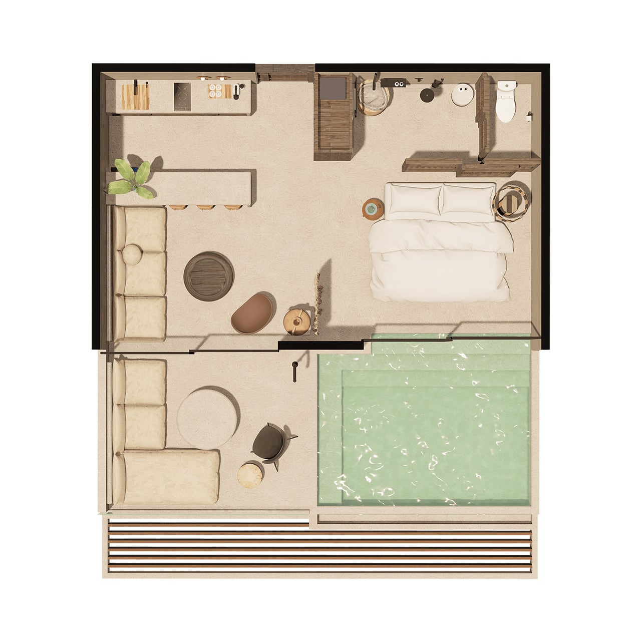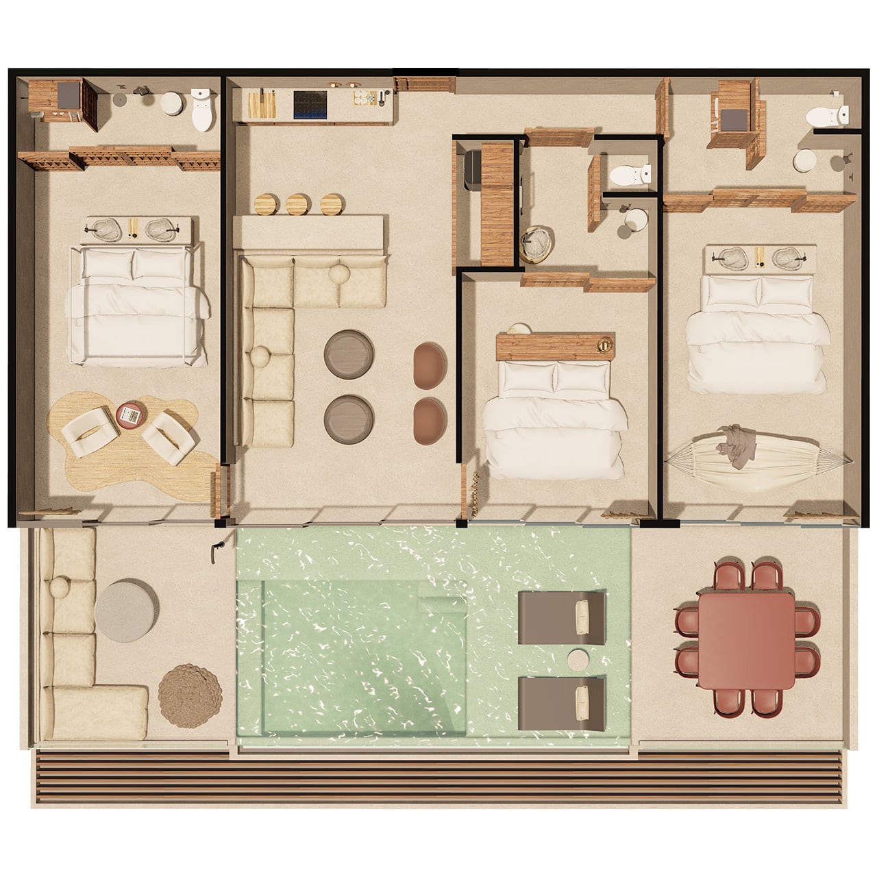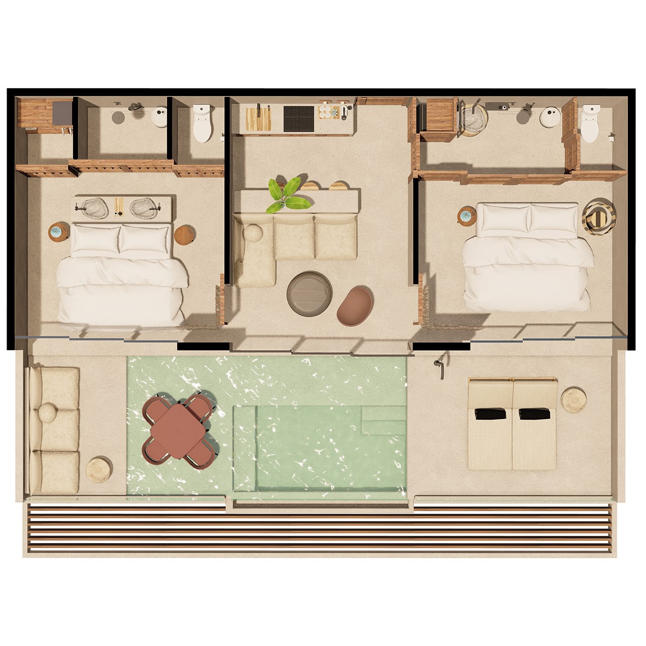 Están estratégicamente diseñadas para que disfrutes de las mejores vistas del lugar, con un diseño arquitectónico inteligente, vanguardista e integrador que te permitirá conectarte con el paraíso tropical que te ofrece Yemanya.